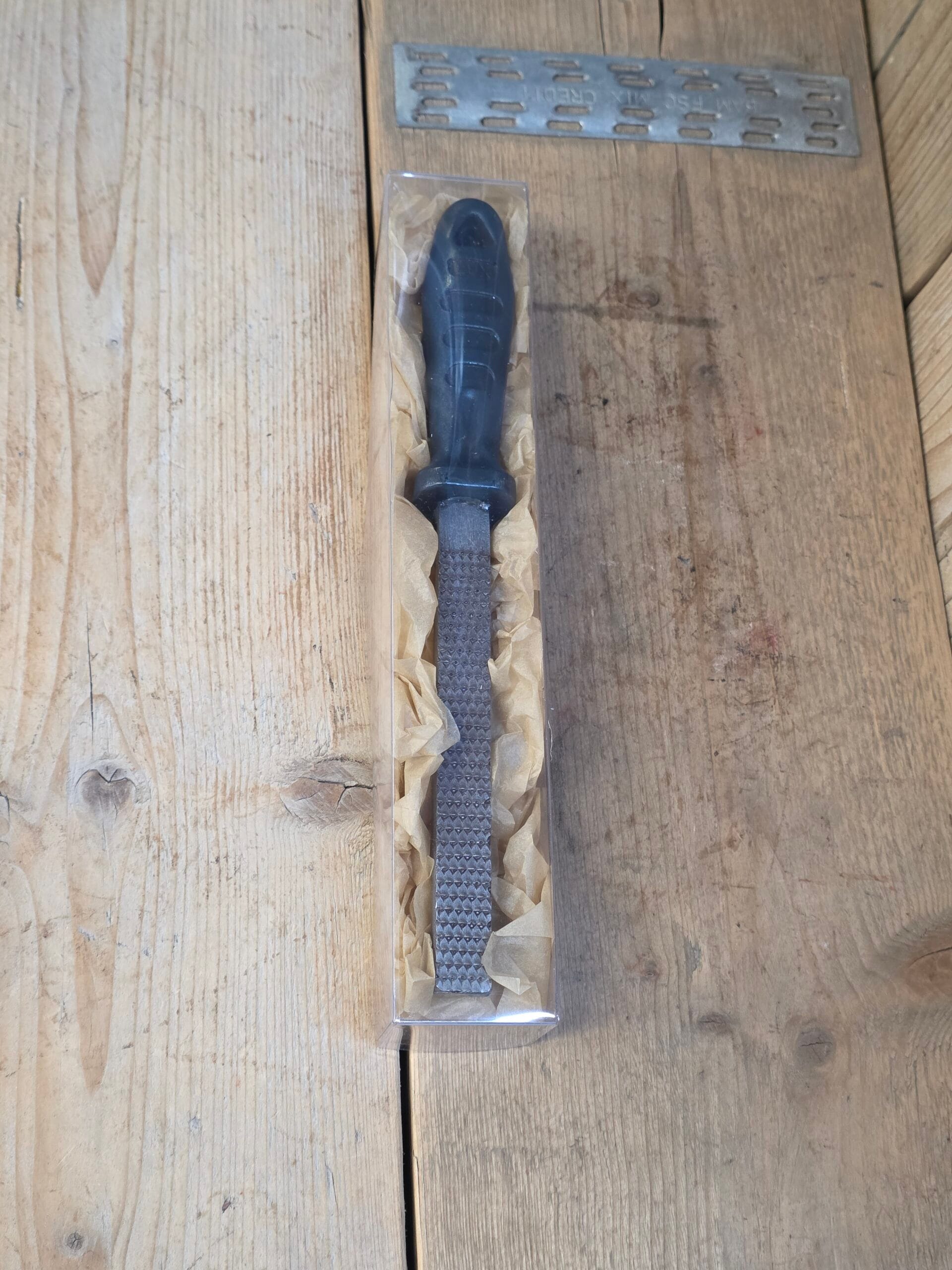 Chocolade houtrasp verpakt in een transparante verpakking op zijdepapier.